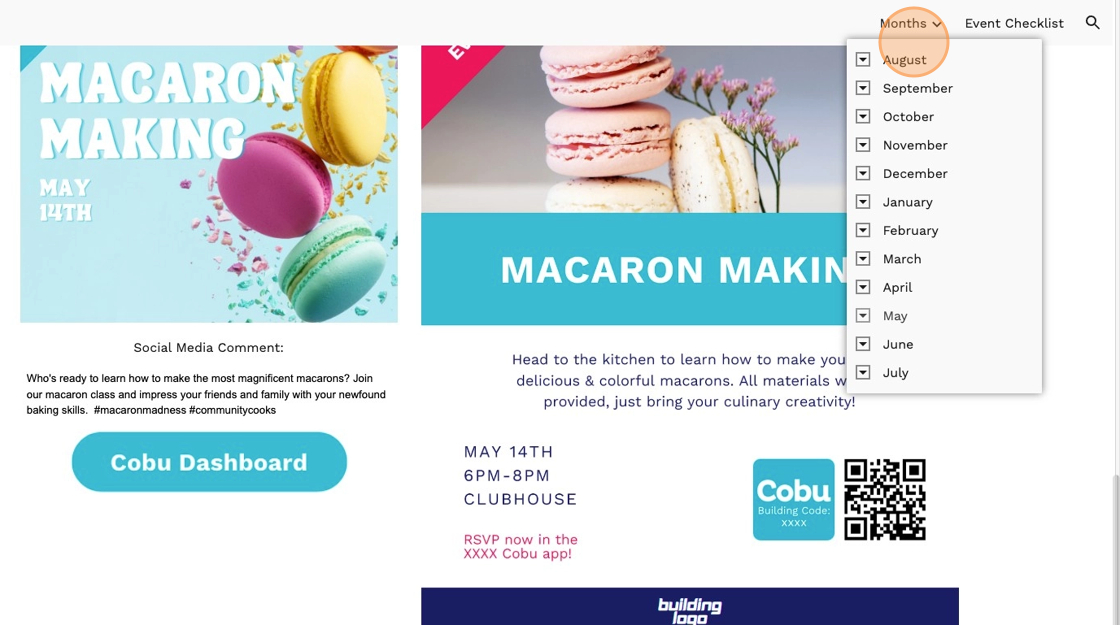 Cobu created flyers always promote RSVP to drive engagement. We recommend properties do the same when advertising events to residents.