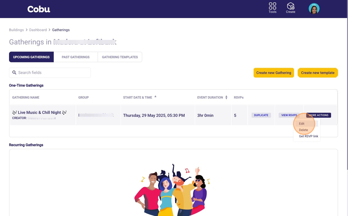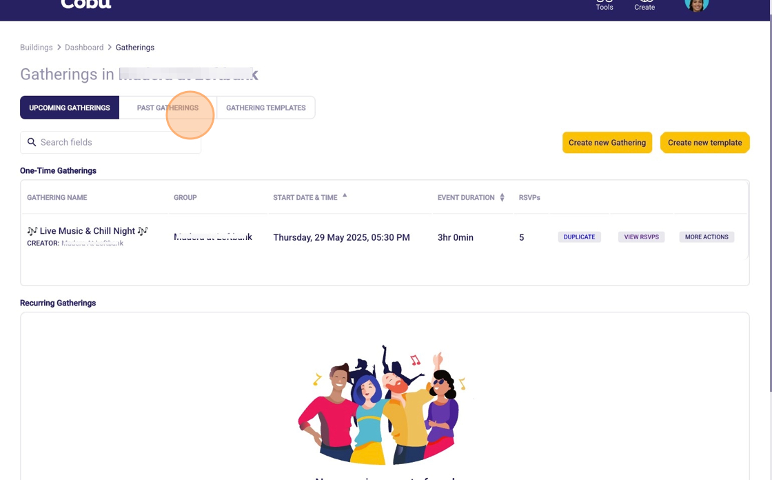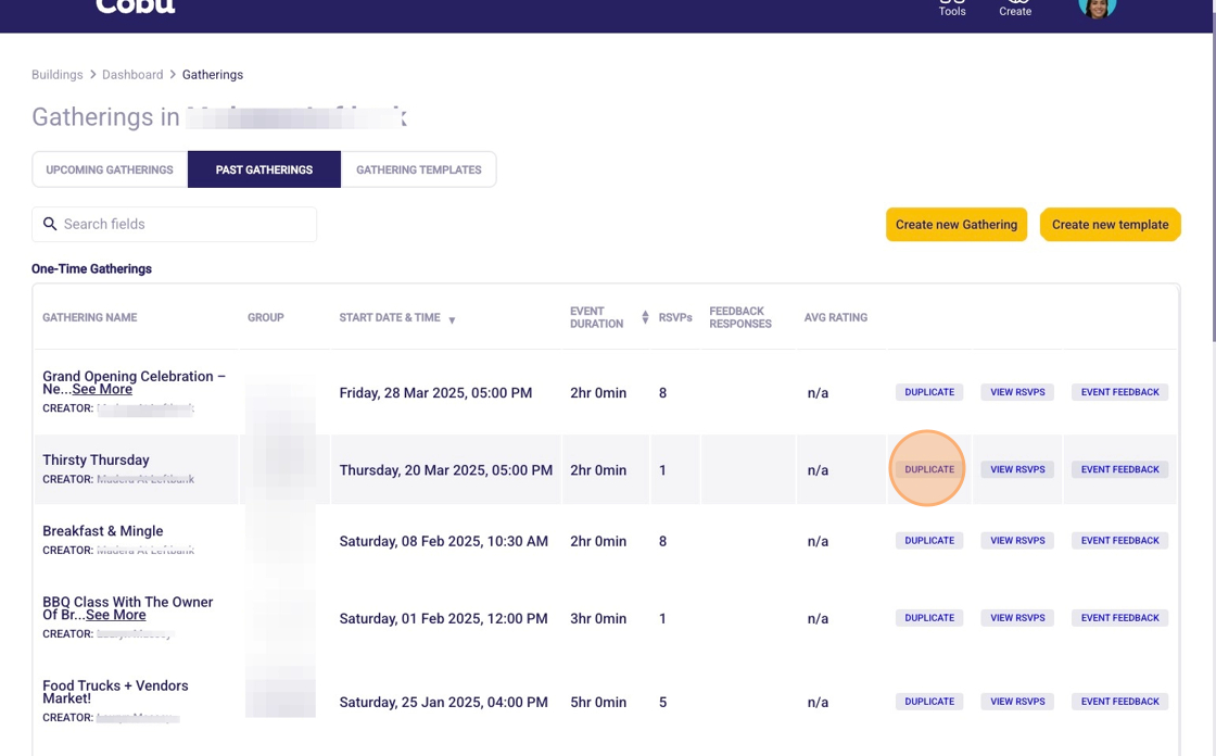 Tip: Save time by duplicating a previous event—Cobu will carry over all the original details. Just update the date/time and make any edits needed before posting it again.