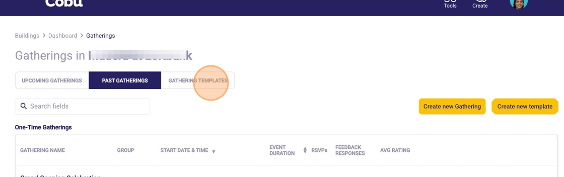 29. If one of the curated ideas inspired you, navigate back to the "Gathering Templates" and click on "Create Gathering" next to the event of your choosing.