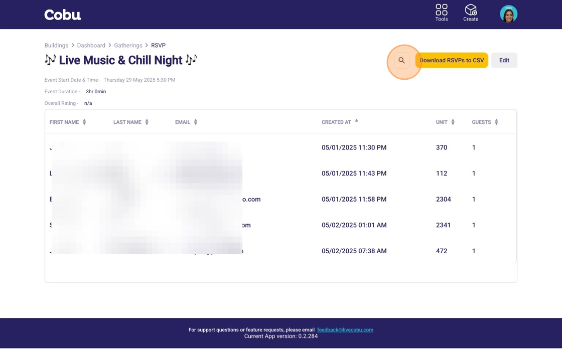 19. Search your RSVP's and/or download your RSVP's to CSV